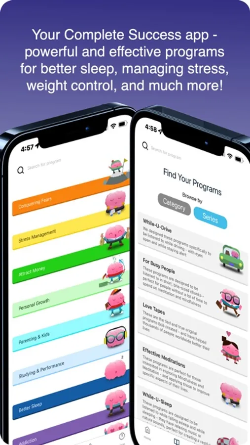 The WiseGuide catalog contains over 140 goal-oriented programs that promote both individual participation and overall organizational success. Listeners receive the motivation, support and encouragement they need to accomplish their goals. The app contains guided imagery programs to aid the listener to quit smoking, control fears, sleep better, be happier, control any bad habit, and be in control of their emotions.