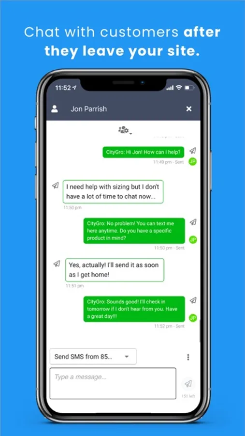 Traditional live chat leaves your website visitors shackled to their browser, growing more impatient by the second. TextChat lets users go on with their lives, transferring the chat from the browser to their phone.