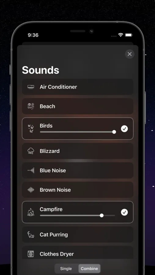 Combine sounds together to create your own ideal soundscape.