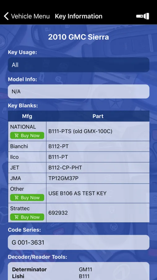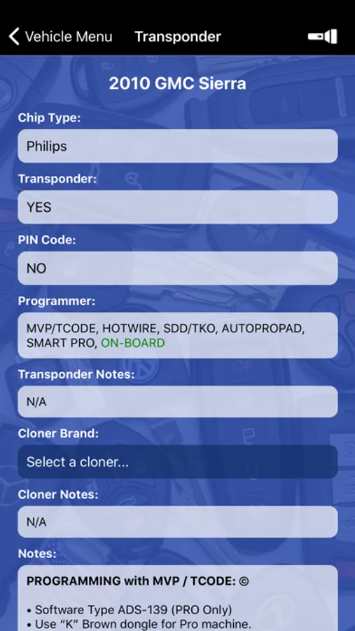 The favorite Locksmith tool for looking up car info for generating keys, programming keys and making sure you have the right key to do the job. ASP and STRATTEC parts are linked to the vehicle when you look it up making it a convenient tool instead of having to lug around 50 catalogs.