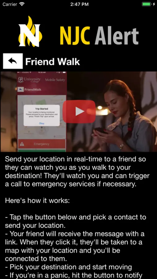 - Friend Walk: Send your location to a friend, who can watch you walk home in real-time.