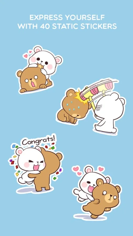 40 cute static stickers in one pack! Download and use Milk and Mocha stickers to express yourself to your loved ones!