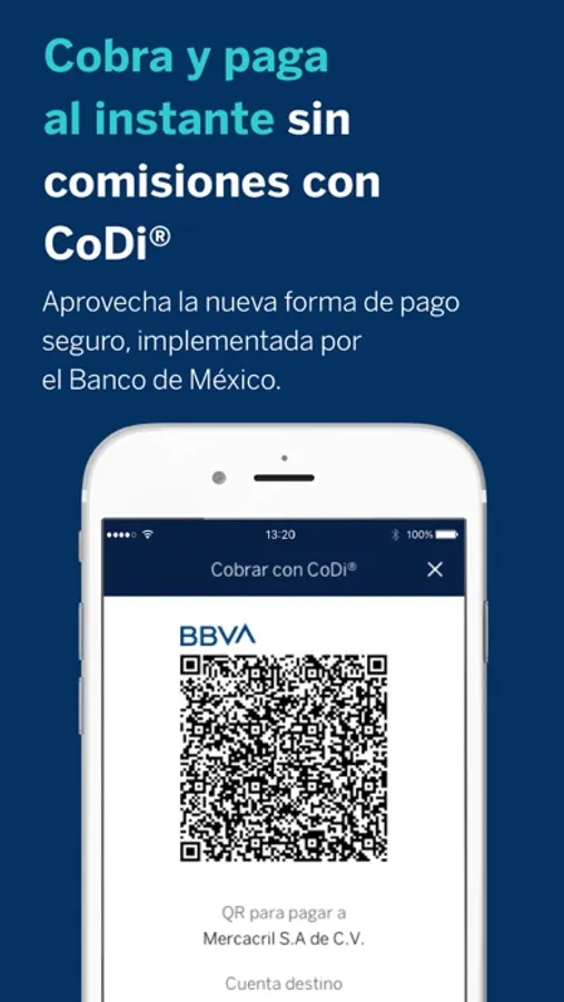 > Realiza cobros CoDi de forma inmediata y sin comisiones, son cobros a través de un código QR, por lo que no necesitas tener un TPV y puedes hacerlo directamente desde la app.