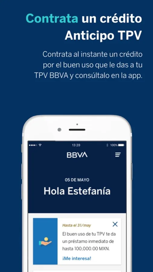 > Contrata un crédito al instante, el cual te ofrecemos como anticipo de tu TPV por el buen uso que le has dado.