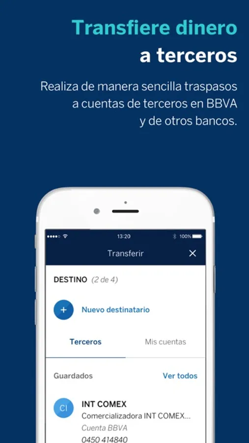 > Efectúa transferencias a cuentas de terceros en BBVA y de otros bancos.