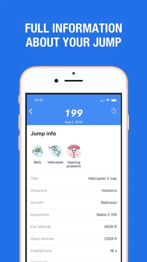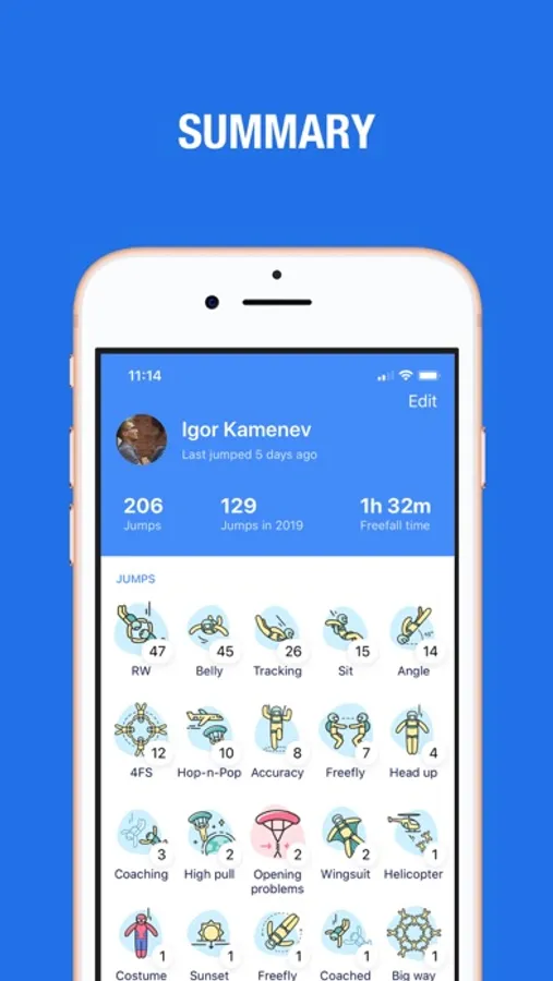 • Automated skydiving logbook