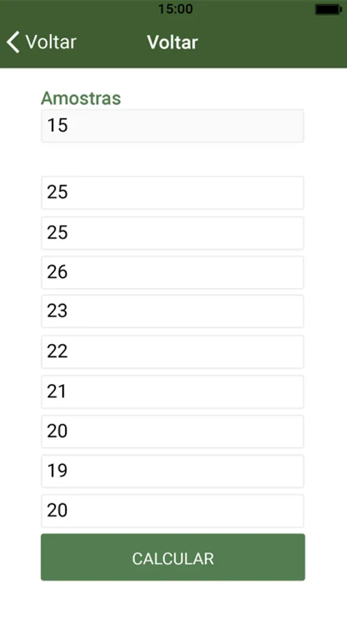 * O aplicativo fornece um campo de entrada de dados, para que você possa informar o peso de cada amostra coletada, realizando o calculo do Coeficiente de Variação, Desvio Padrão e Média de peso .