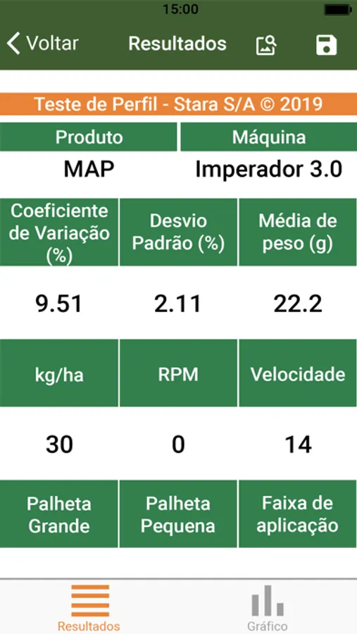 * O aplicativo também gera um relatório com todos os resultados e o gráfico de distribuição, para que você possa salvar e consultar todos os testes realizados!
