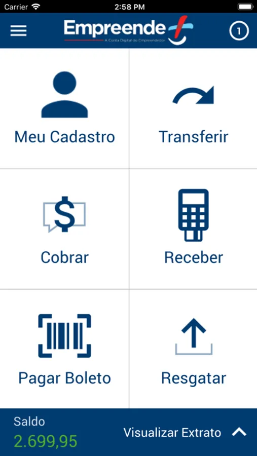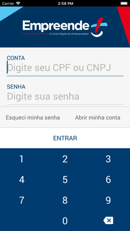 Lançamos agora a Conta digital para clientes do Banco do Empreendedor. Resolva suas principais operações financeiras como pagamento de contas, cobrança e transferências, recarga de celular e pague seus funcionários. Use ainda como solução de pagamentos com cartão de crédito, sem necessidade de maquininha. Receba e pague seus empréstimos via aplicativo. Se você ainda não é cliente do banco, abra agora via app ou site. A Casa do Empreendedor agora é DIGITAL.