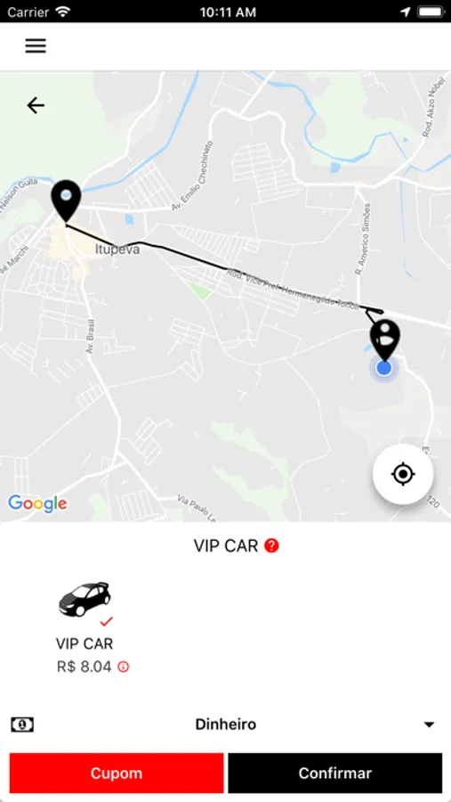 Nosso aplicativo permite que você solicite uma viajem e acompanhe o deslocamento do motorista pelo mapa, sendo avisado quando ele estiver na sua porta.