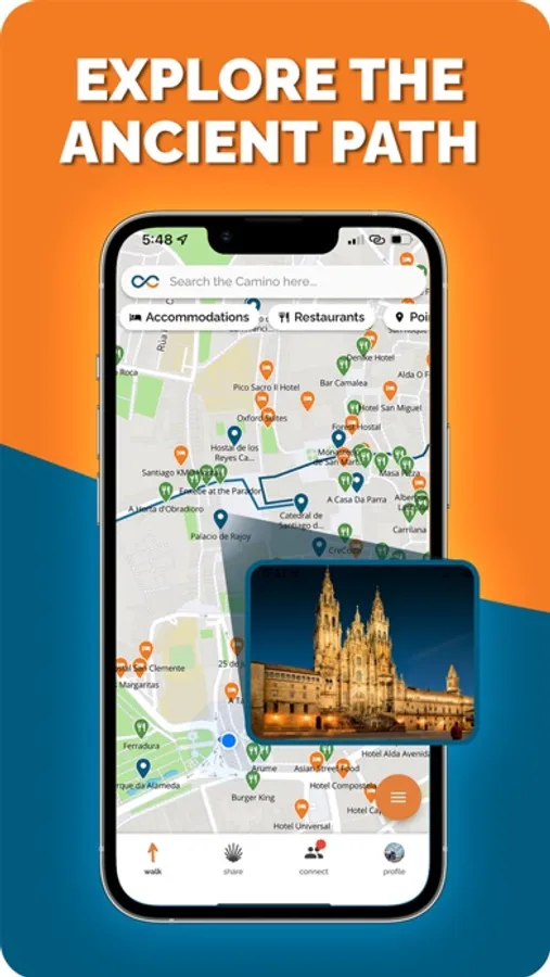 Walking the Camino de Santiago is a powerful, life-changing experience for hundreds of thousands of people each year. The Camino Connections App is the first tool created exclusively to help you share the power of the Camino through written story, photos, videos or live recordings, both with fellow hikers and, through a simple Facebook interface, with family and friends back home. Share your story and follow other pilgrim stories all the way to Santiago using our map or story feed - in real time. Stay connected easily with the people you meet along the way. Enrich your Camino experience as you walk far and connect deep.