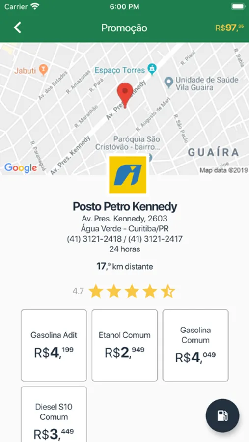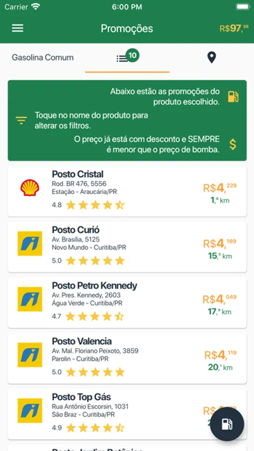 Você pode abastecer em qualquer posto da rede conveniada.