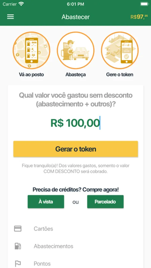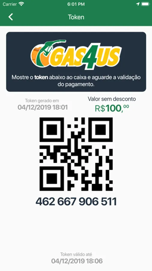 Gere o token e mostre ao caixa do posto.