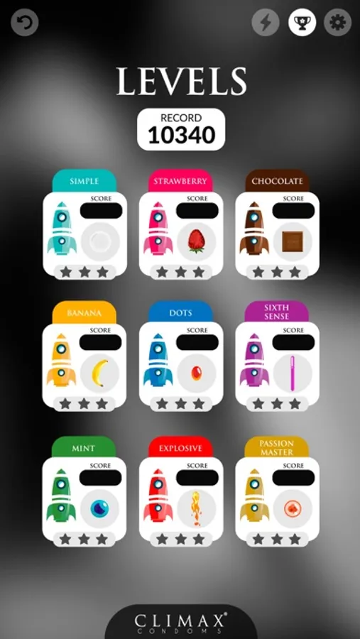 Learn to have safe sex in a fun way with the different options that Climax Condoms offers you: Simple, Strawberry, Chocolate, Banana, Mint, Explosive, Sixth Sense, Passion Master, Points, Hoops, Maximum; each with a specific power that you can turn into super power to advance level and share the result with your friends.
