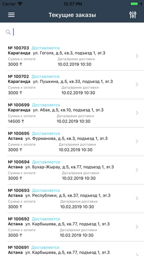 • ИНФОРМАЦИЯ О ЗАКАЗАХ, НАЗНАЧЕННЫХ КУРЬЕРУ