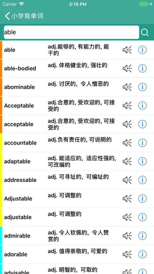 小学生英语背单词主打在小学阶段的单词,并增加对应的读音功能,记得更快、更牢,已帮助众多小学生学完成单词学习任务!