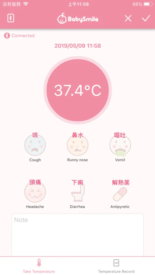 「体温くん」is an APP which is specifically designed for the thermometer “BabySmile Pit plus S-708” of SEASTAR. People could easily record their temperature with the APP via Bluetooth every day, and highlight their symptoms by taking notes or adding emojis for the health management. It will help people track the daily changes of their physical conditions. 「体温くん」exports the data into line graphs to make the health report clearly read. It will also be more convenient for people to bring the report to a hospital for doctors’ reference.
