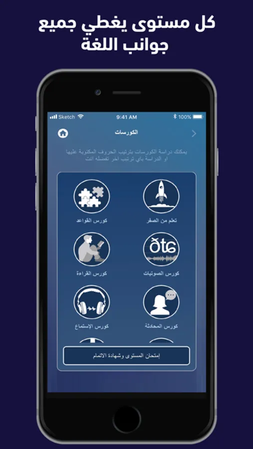 التطبيق مقسم لمستويات وبعد إتمام كل مستوى تحصل على شهادة موثقة باجتيازه