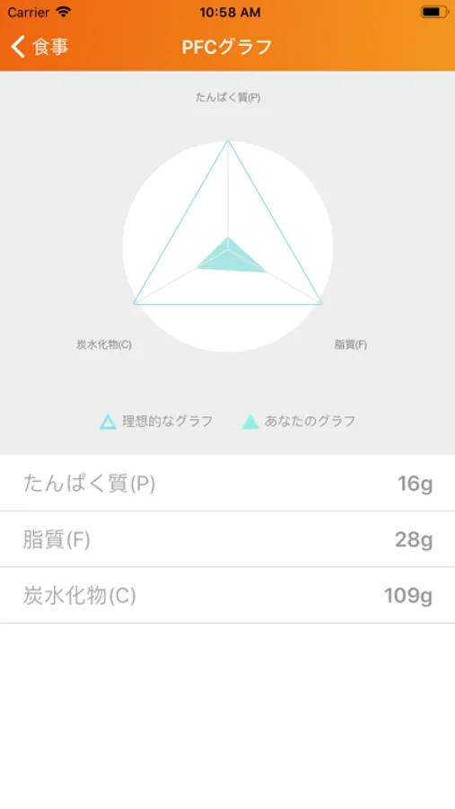食事のカロリーを記録して、ホーム画面に表示される「のこり摂取カロリー」分はしっかり食べることと、PFCバランスはしっかり守っていきましょう。無理なダイエットはNGです。