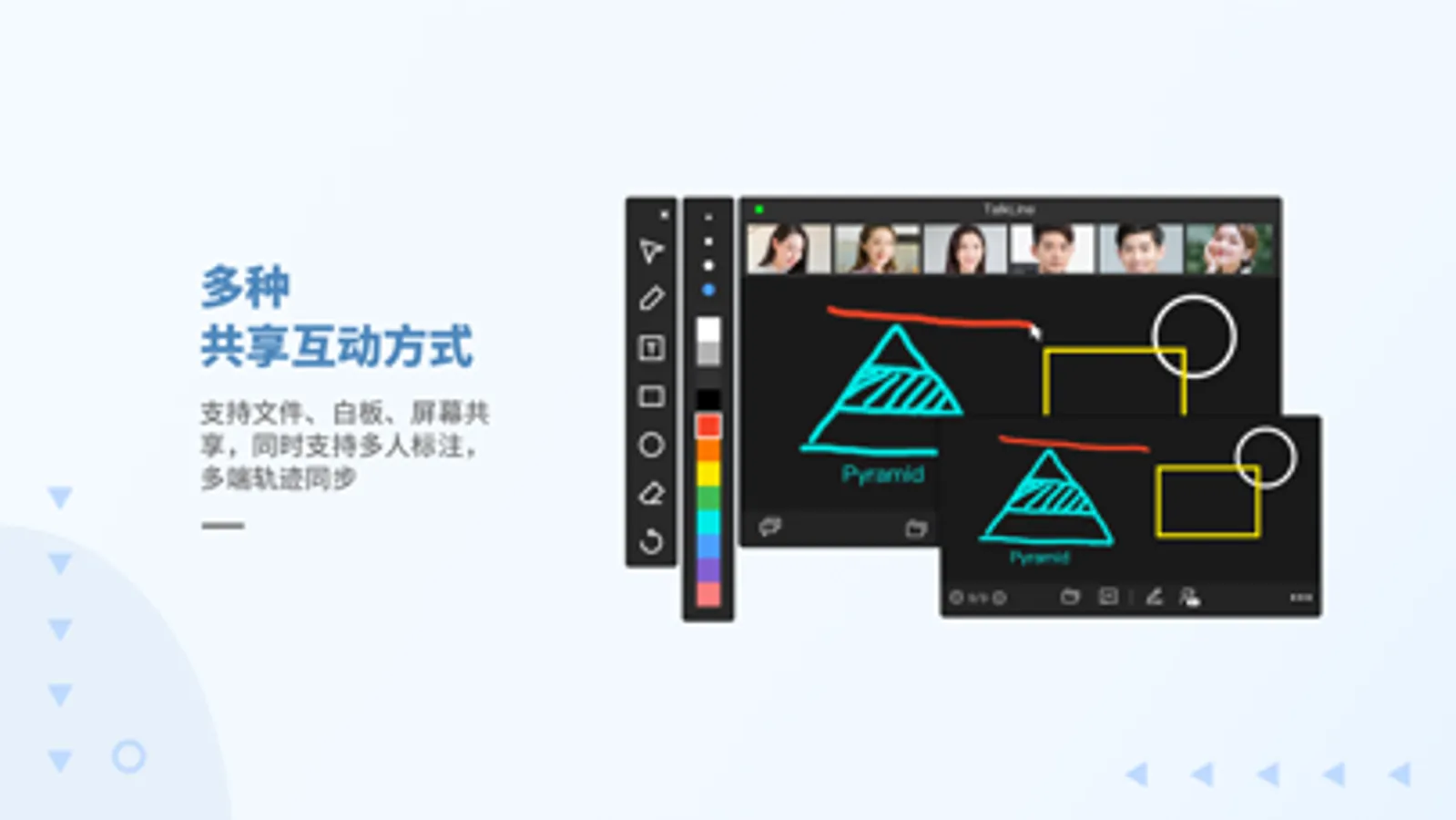 支持多种共享方式,可将文件、屏幕等共享给所有参会成员。共享时支持多人同时批注,帮助参会成员理解会议内容,更好地实现远程协同办公。