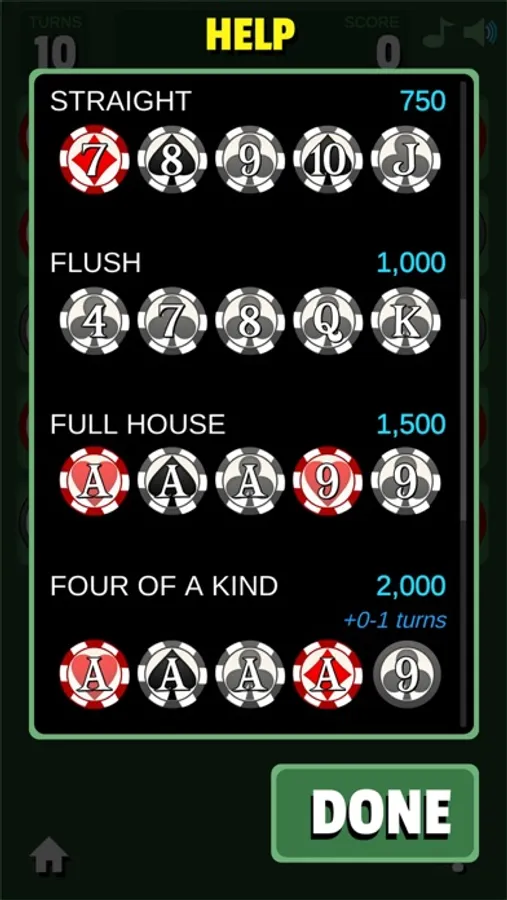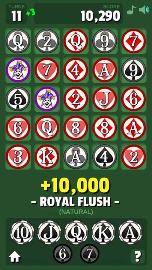 Drag your finger to connect a poker hand of 7 cards. Try to get the best hand. Turns are limited, but you can get bonus turns by high scoring hands.