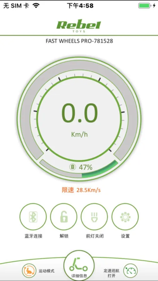 This is a smart electric scooter APP.APP wireless communication with the scooter through Bluetooth. Through the APP you can view the detailed information of the vehicle and set the vehicle parameters.