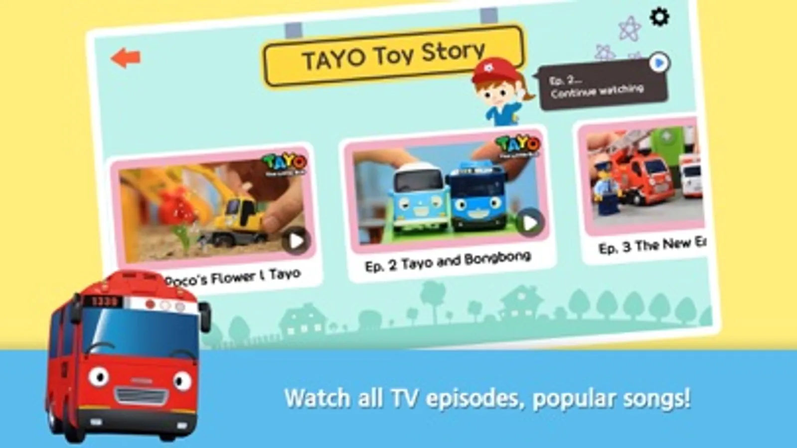 Watch all TV episodes, popular songs, and heavy machinery/rescue team videos on [Tayo TV].