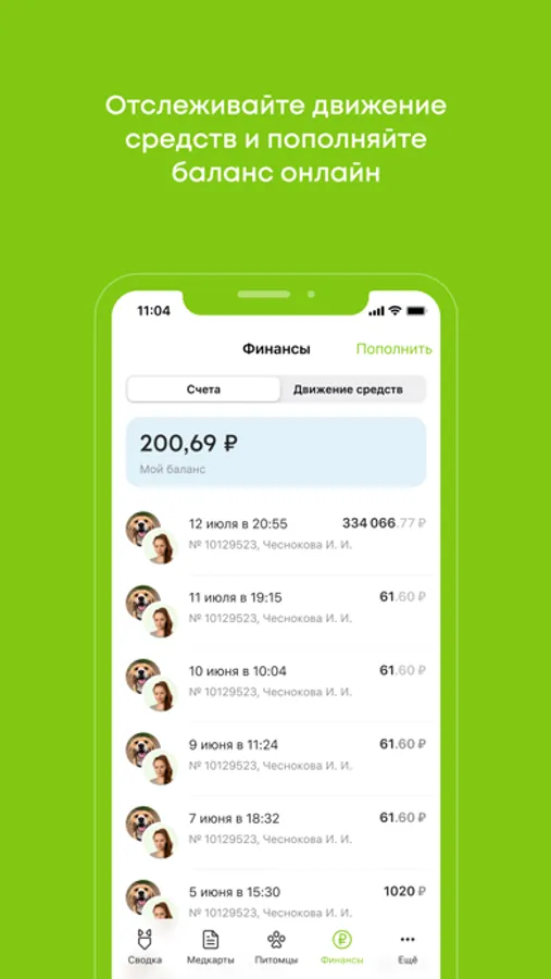 - Оплачивать услуги клиники, пополнять счёт себе и близким.