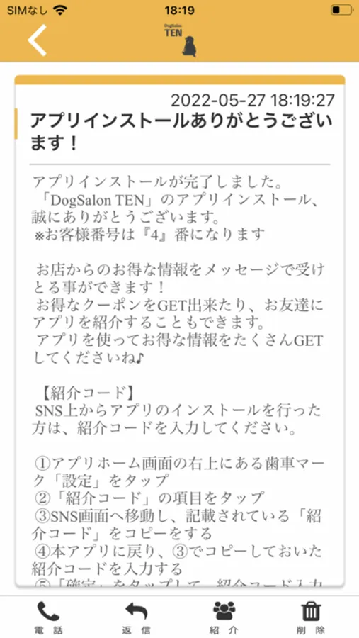 DogSalon TENのアプリをSNSを通じてお友達に紹介する事ができます。
