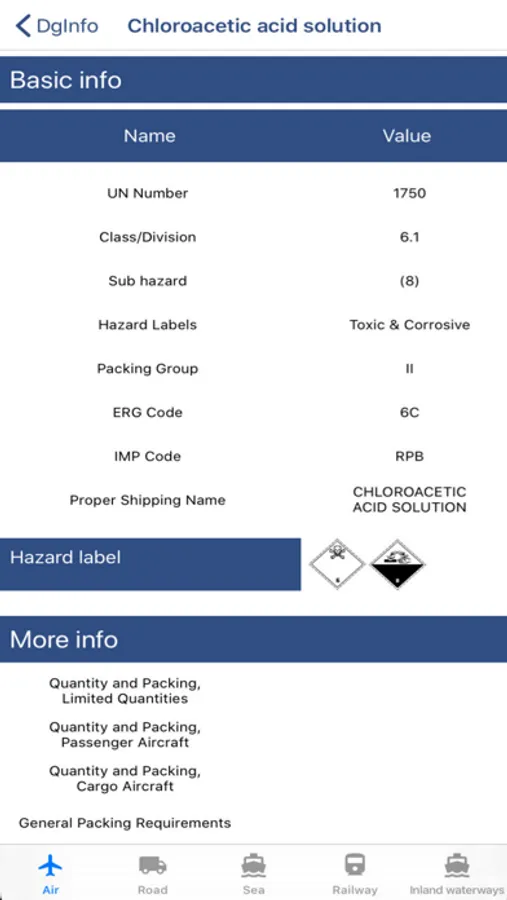 Basic information from the dangerous goods database can be viewed, but not in full detail. If you want more functionalities or information, go to our website and sign up for a demo or contact us!