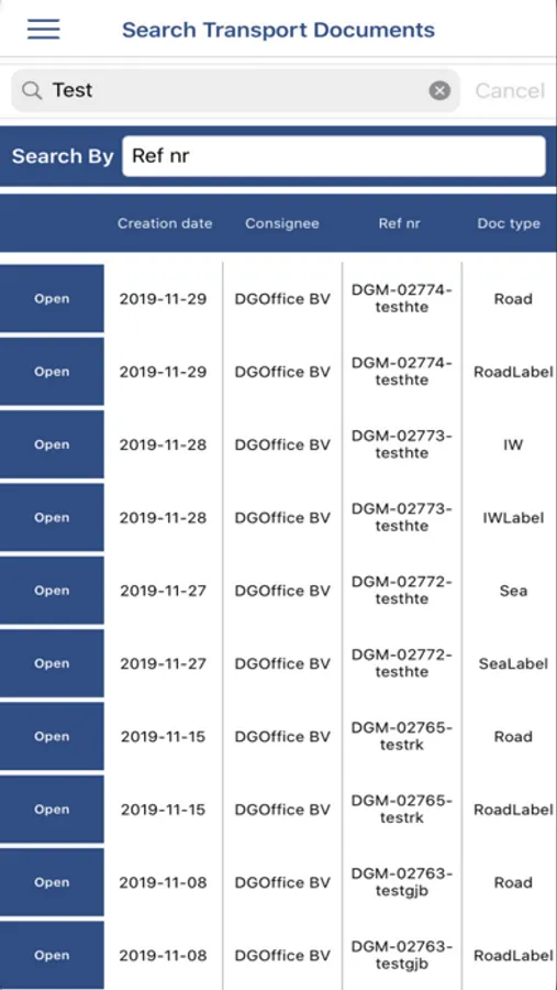 Via the document archive, previously generated transport documents can be viewed. They can be opened as PDF or XML file on your device.