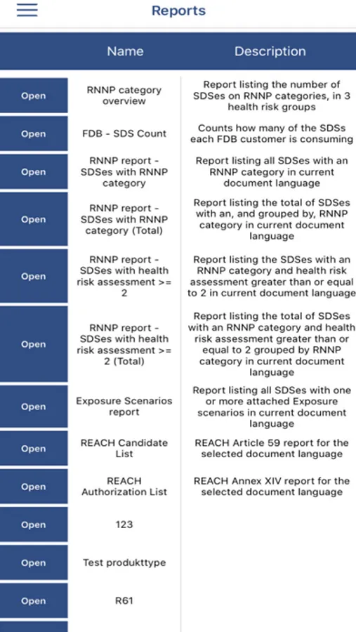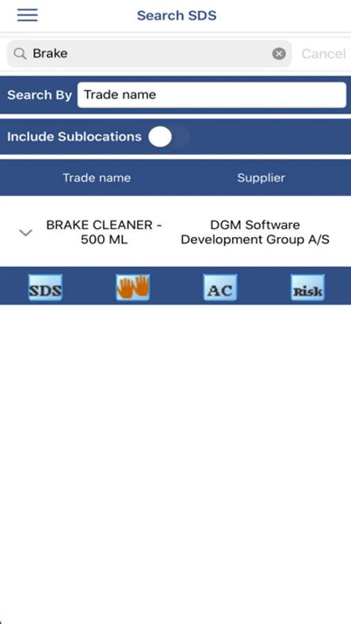 Use different search criteria, e.g. trade name, article name or CAS number, to view a published SDS. The SDS can be opened and downloaded as PDF (e.g. for distribution via mail or other apps), as well as possibly linked action cards and risk assessments.