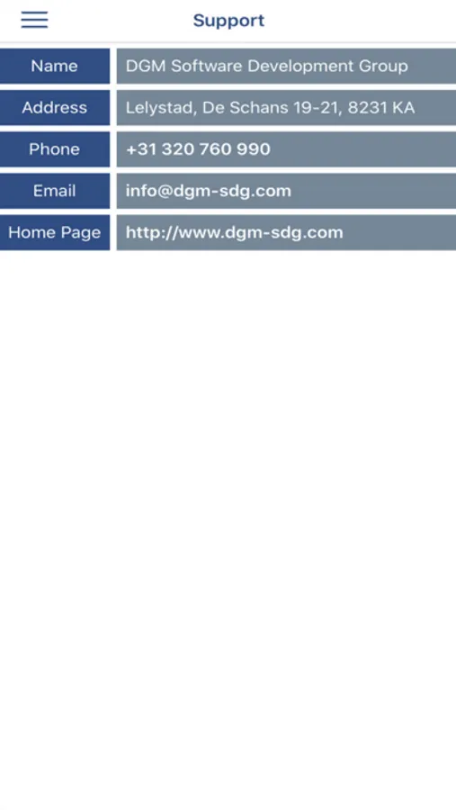 The contact details of your reseller are displayed. You can call or email your reseller directly from the app.