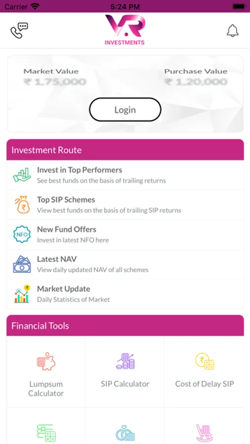VR Investments is one-stop shopping for all your Wealth Management needs. You can use this state of the art app to stay on top of your Complete Financial Portfolio with all assets: