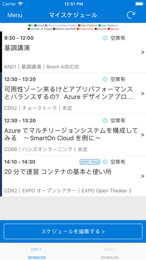 2019 年 5 月 29 日 - 30 日にザ・プリンス パークタワー東京で開催される de:code 2019 に参加されるお客様向けの公式イベントアプリです。参加申し込みいただいた際に利用された Microsoft アカウントもしくは LinkedIn アカウントでサインインいただくことで、より快適に、よりスムーズに、イベントを体験いただくことができます。