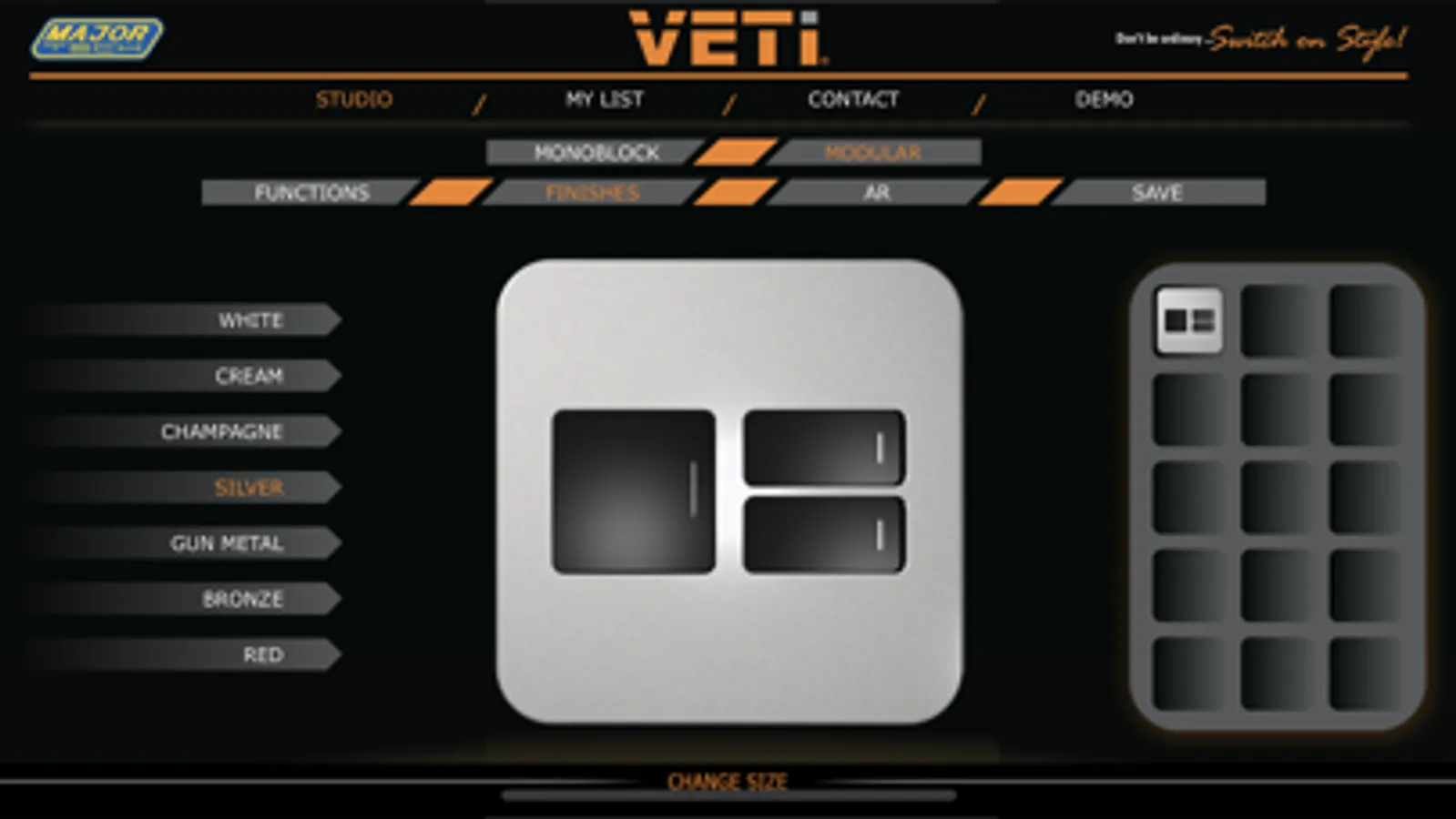 Select the modules to build your perfect combination that match your personal requirements and home décor. Now that you are happy with your customised switches and sockets, save to your list and let the Veti Studio total the items needed.