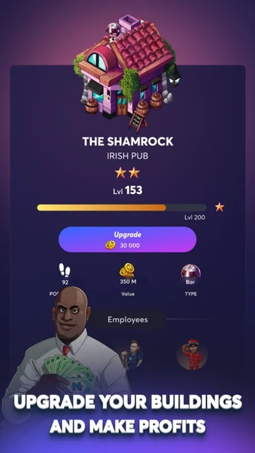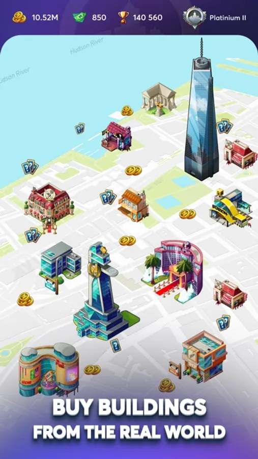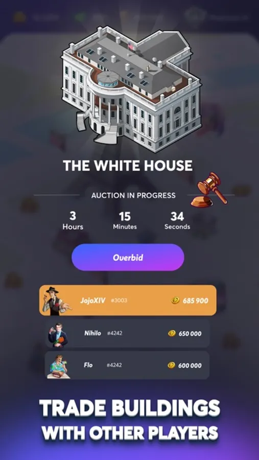 Make an offer to buy the town hall of your city, your office or your favorite bar, but also the Empire State Building or the White House! Covet the most popular buildings: every time another player visits one of your buildings, you will earn more money!