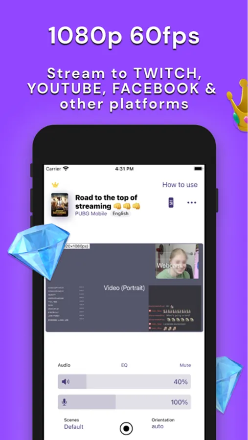 Stream like a champ to Twitch, YouTube, Facebook and other platforms from your iPad or iPhone. Live stream how you draw with Procreate or playing games like League of Legends Wild Rift, PUBG Mobile, Brawl Stars, Roblox, Minecraft, and more!