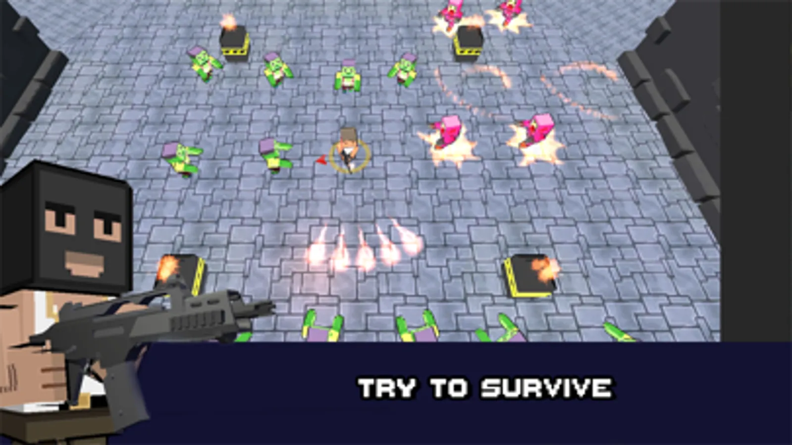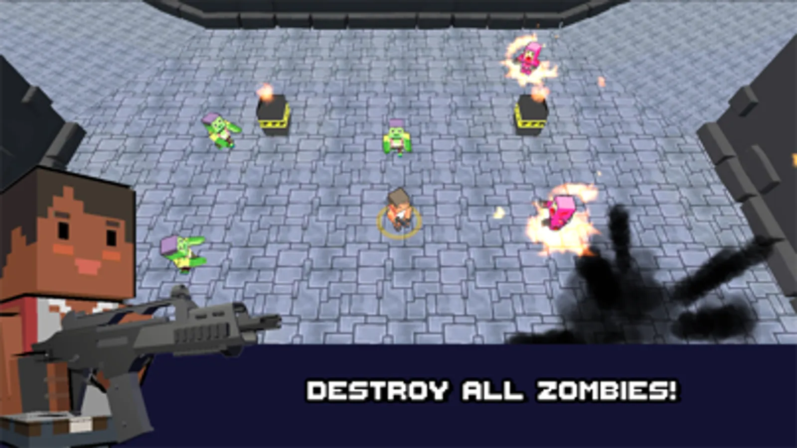 Survive various waves of zombies with weapons and improvements that unlock during the game.