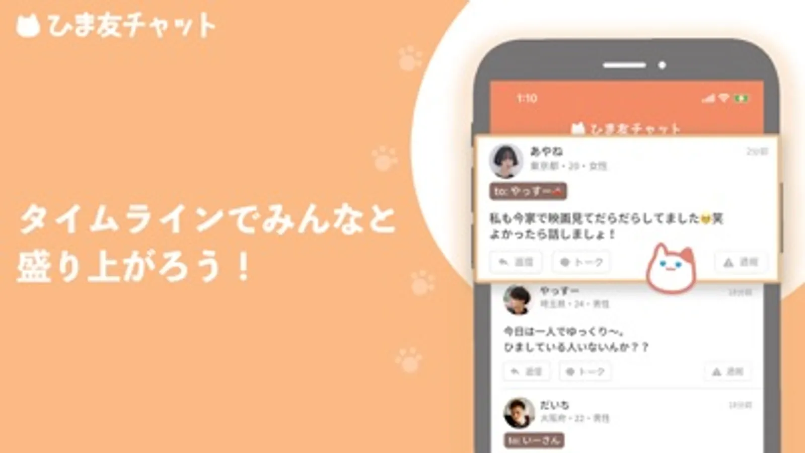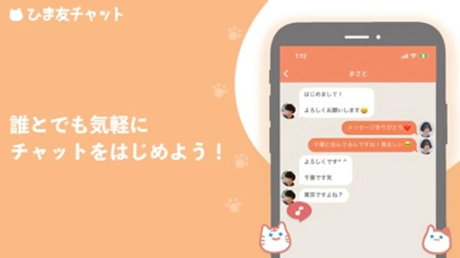 本アプリは「ひま友と"すぐに"チャットができるコミュニティSNS」です。