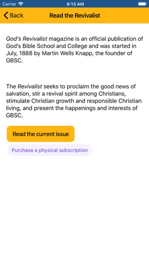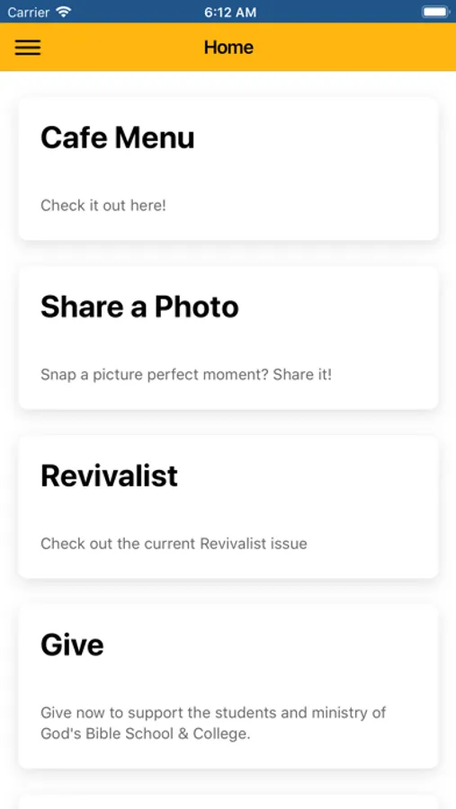 The Official GBSC App - Keep up to date with all of the happenings around God's Bible School and College. Find out what's for lunch in the cafeteria or be notified when there is a new Revivalist publication. The next time you find an interesting photo on campus, why keep it for yourself? Share it in the app!