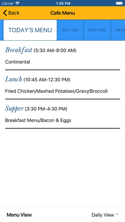 - View Campus Cafeteria Menu