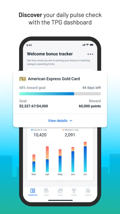 Tailor your TPG experience with the completely customizable dashboard. Check in daily to track your rewards, welcome offers, see priority trips, compare monthly earned points to missed points, and get a snapshot of your recent transaction history. Don't forget you can also use tools to discover new destinations and get spending recommendations.