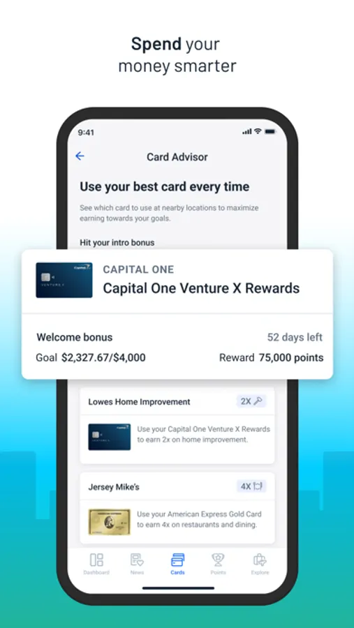 Out making a purchase? Spend smarter, and earn more points faster: Sync your credit cards to learn how to maximize each one with an in-depth breakdown of your personalized spend categories, benefit summaries and real-time tips on which cards to use before any purchase.