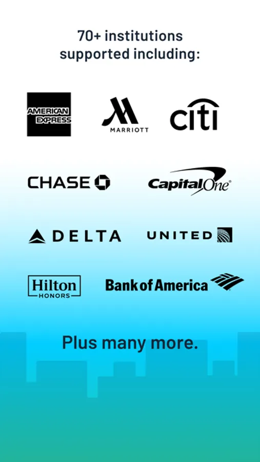 Across the 70+ institutions supported, you can choose to connect your account for automated tracking or add cards, points or miles without connecting to manage your rewards manually. Some of the secure bank connections you can make include: