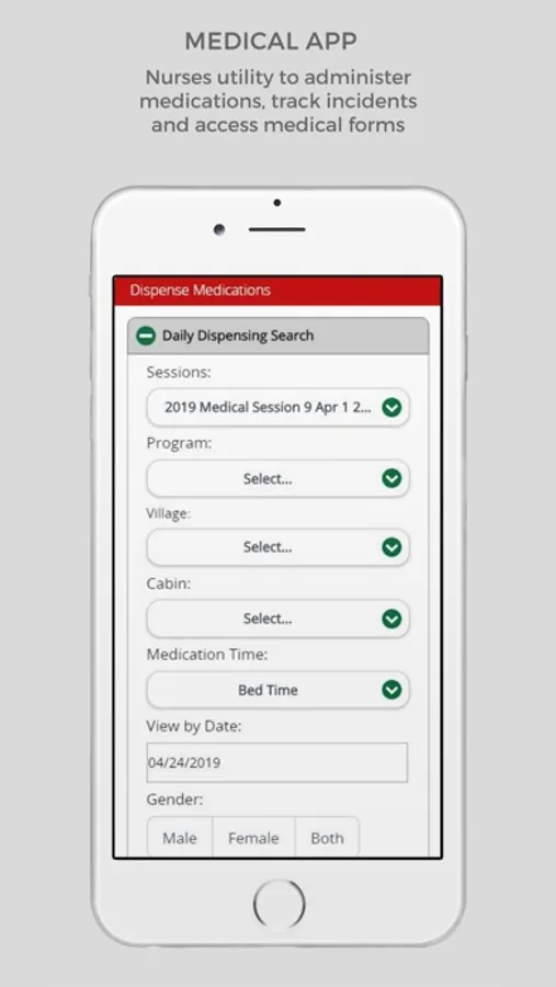 Allows nurses to add, administer and dispense both prescription and OTC medications to campers. The app also tracks incidents, visits to the nurse by campers, and provides access to camper medical forms submitted to the camp.