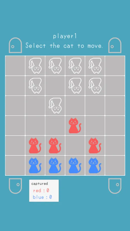 Each player have 4 red cats and 4 blue cats.