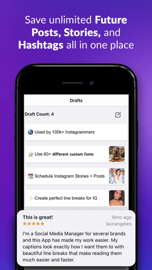 5. Save unlimited drafts (for future posts, stories, hashtag groups, and more)