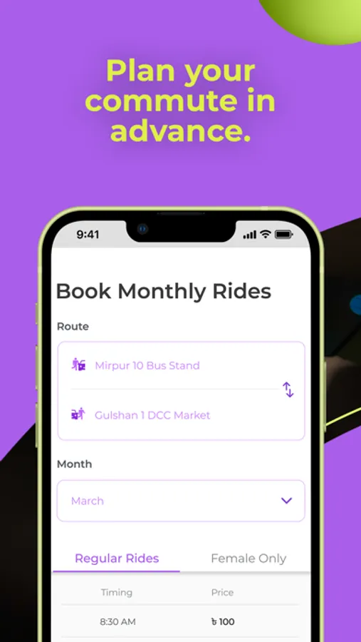In Bangladesh, women face the most difficulties over commuting. The ‘Female Only’ option is dedicated to transport women. Now, women can travel to their destinations safely and comfortably.