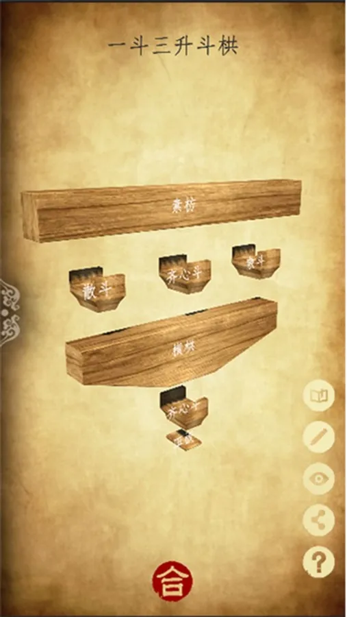 单指长按结构部件进入单独观察部件模式 通过按钮拆解斗栱 查看部件的名称和功能简介